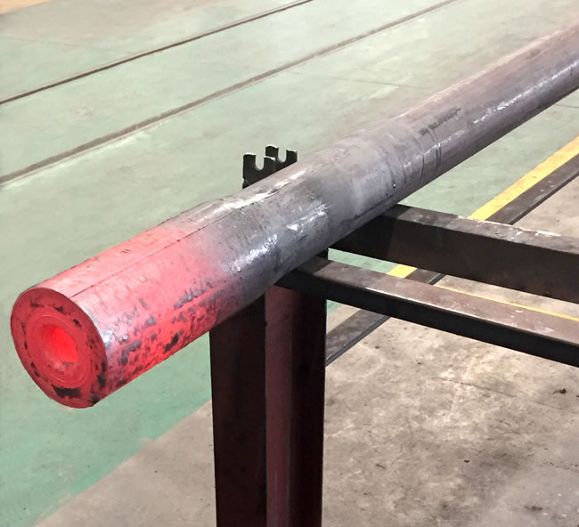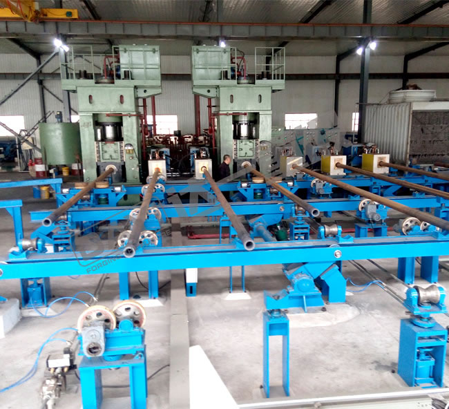 管端加厚機(jī)是我公司針對石油鉆桿、油管的加厚工藝研發(fā)的新型特種設(shè)備,管端加厚的目的主要是為了保證鋼管在管端車加工截面處的強度,鋼管加厚類型有外加厚、內(nèi)加厚、內(nèi)外加厚三種工藝。加厚機(jī)組有加厚機(jī)、輔機(jī)及加熱系統(tǒng)等組成,即對鋼管進(jìn)行橫向運輸、加熱及端部加厚。