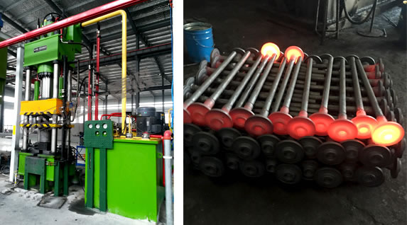 預(yù)墩機(jī)、擺輾鍛造機(jī)是我公司針對(duì)汽車半軸相關(guān)產(chǎn)品獨(dú)特開(kāi)發(fā)的特種成形設(shè)備,是國(guó)內(nèi)先進(jìn)的節(jié)能、節(jié)材、少無(wú)切削及機(jī)電一體化的高科技?jí)毫Τ尚卧O(shè)備。該設(shè)備具有投資小、耗能低、易維修、操作簡(jiǎn)單等優(yōu)點(diǎn),輾壓力僅為常規(guī)鍛造的1/15-1/10,較普通鍛錘類設(shè)備具有效率高(提高3倍以上)、加工零件精度高、節(jié)約原材料、噪音低、振動(dòng)小等優(yōu)點(diǎn)。自擺輾鍛造機(jī)在我國(guó)正式生產(chǎn)和推廣以來(lái),現(xiàn)已為汽車半軸等生產(chǎn)企業(yè)和必備鍛造制坯設(shè)備,并為我國(guó)汽車半軸的鍛造加工做出了巨大的貢獻(xiàn)。