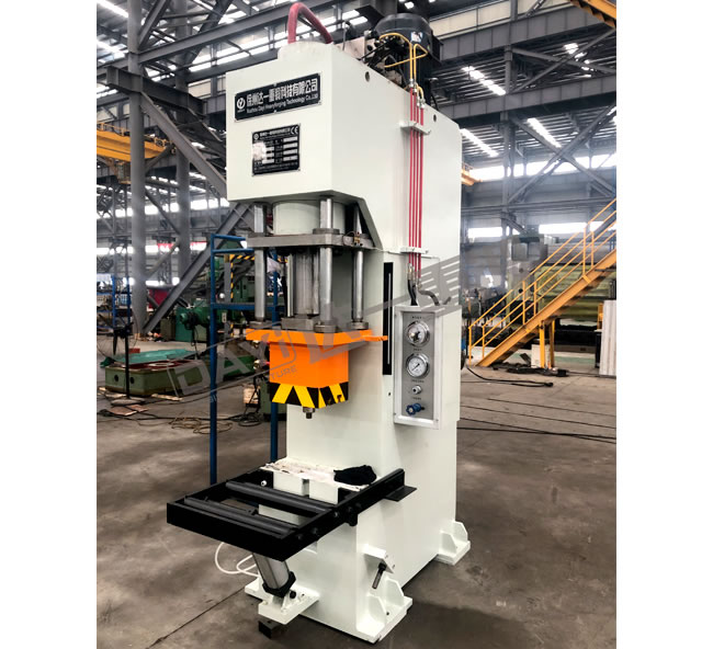 單柱液壓機(jī),機(jī)身為C型單臂式結(jié)構(gòu):